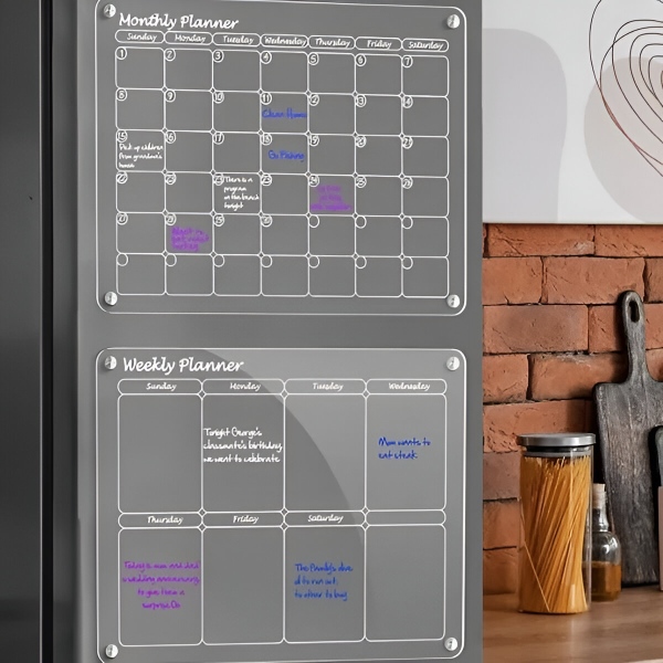 Papierplaner laufen nach einem Monat ab und landen direkt im Mülleimer. Die klare Acryloberfläche lässt sich mit dem mitgelieferten Tuch in Sekundenschnelle komplett reinigen – kein Verblassen, keine Flecken, keine Rückstände. Die Oberfläche ist kratzfest und schmutzabweisend, sodass sie nach hunderten von Wischvorgängen kristallklar bleibt.