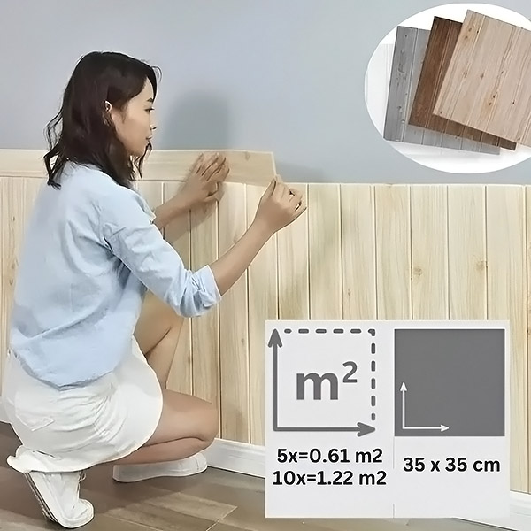 Jede Packung enthält 5 Stück (35×35 cm), die 0,61 m² abdecken. Berechnen Sie vor der Renovierung, wie viele Packungen Sie je nach Wandfläche benötigen. Kaufen Sie mehr Packungen für größere Flächen und profitieren Sie von Mengenrabatten!