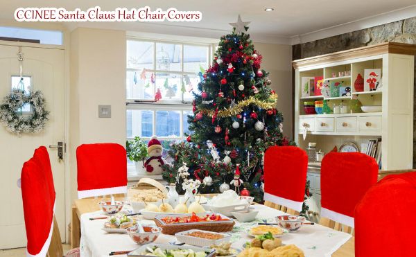 Roter Hut Stuhl zurück deckt sind perfekt in der Weihnachtszeit zu verwenden, gute Indoor-Dekoration für Haus, Büro und Klassenzimmer, wird Ihre Freunde, Familie einen wunderbaren Eindruck Weihnachten verlassen.