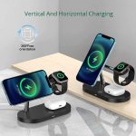 Die Ladestation ist mit mehreren Schutzfunktionen ausgestattet, darunter Fremdkörpererkennung, Übertemperaturkontrolle, Überstromschutz und Überspannungsschutz. Es verfügt außerdem über einen zusätzlichen USB-A-Anschluss auf der Rückseite, über den Sie ein viertes Gerät wie ein iPad aufladen können. Das Gerät kann sowohl vertikal als auch horizontal aufgeladen werden und sorgt so für den optimalen Betrachtungswinkel beim Ansehen von Videos oder Filmen.
