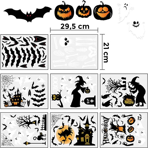 Halloween Fensteraufkleber (10 Bögen mit Aufklebern im Set) | SPOOKCLINGS