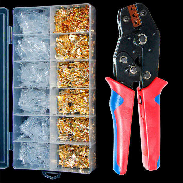 Die Crimpzange und die 450 Steckverbinder sorgen für eine erstklassige elektrische Leitfähigkeit.