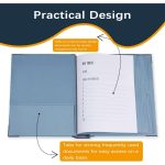 Enthält 10 erweiterbare Umschläge (6 in voller Größe, 4 halbe Größe), die jeweils bis zu 10 Blatt fassen.