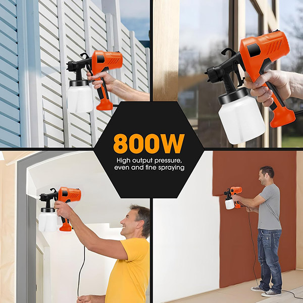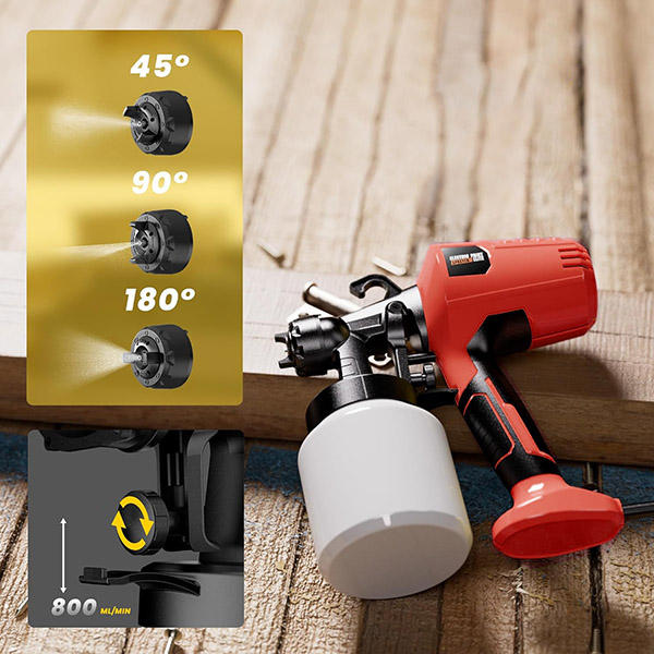 Die spezielle Düse erzeugt einen feinen Farbnebel, der sich gleichmäßig absetzt, ohne Streifen oder Flecken. Das Werkzeug vermittelt das Gefühl, dass sich jeder Bereich „wie von selbst“ streicht, unabhängig von Material, Benutzererfahrung oder Bewegungsrichtung.