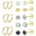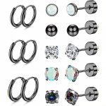 Enthält acht Paare aus verschiedenen Steckern und kleinen Creolen zum Kombinieren an Ohrläppchen, Helix oder Tragus.