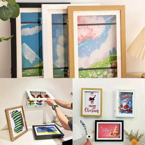 Präsentieren sie die kunstwerke, gemälde, familienfotos oder postkarten ihres kindes stolz an ihren wänden. Das moderne design von FRAMELET ermöglicht es ihnen, neue werke einfach zu drehen und auszustellen, damit ihre wände frisch und voller persönlichkeit bleiben.