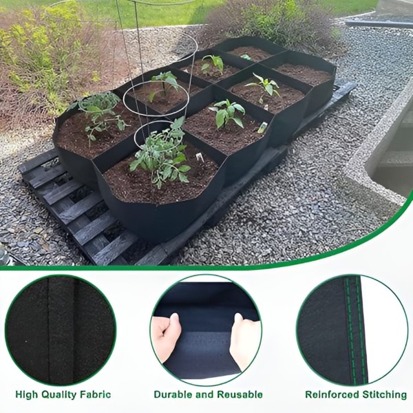 Dieses Hochbeet ist aus hochwertigem, verdicktem Vliesstoff gefertigt und mit verstärkten Nähten ausgestattet.