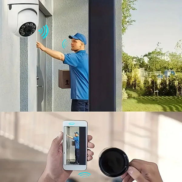 Mit dem Gegensprechlautsprecher von BULBCAM können Sie direkt über das Handy mit jeder Person vor Ihrer Tür sprechen. Sie können auch Anweisungen an das Lieferpersonal geben oder sogar Gäste leiten, wenn Sie beschäftigt oder abwesend sind, so dass Sie Ihre Besucher von überall aus verwalten können.