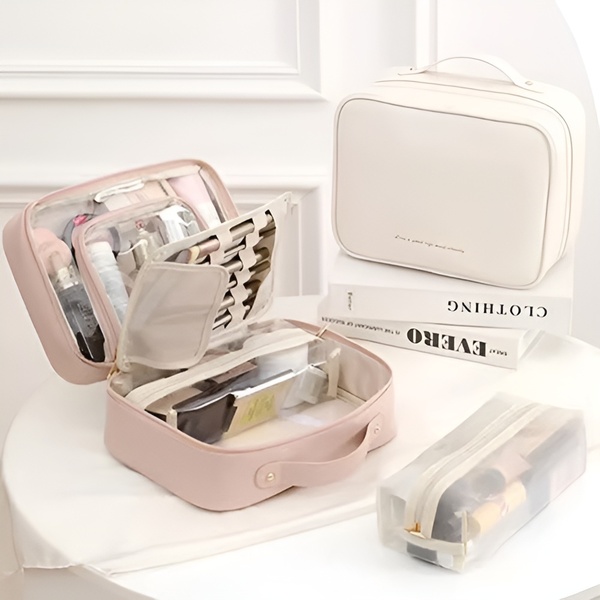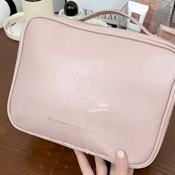 Diese Tasche aus strapazierfähigem, wasserabweisendem Material schützt deine Kosmetika vor Beschädigungen und verleiht ihnen einen Hauch von Luxus.