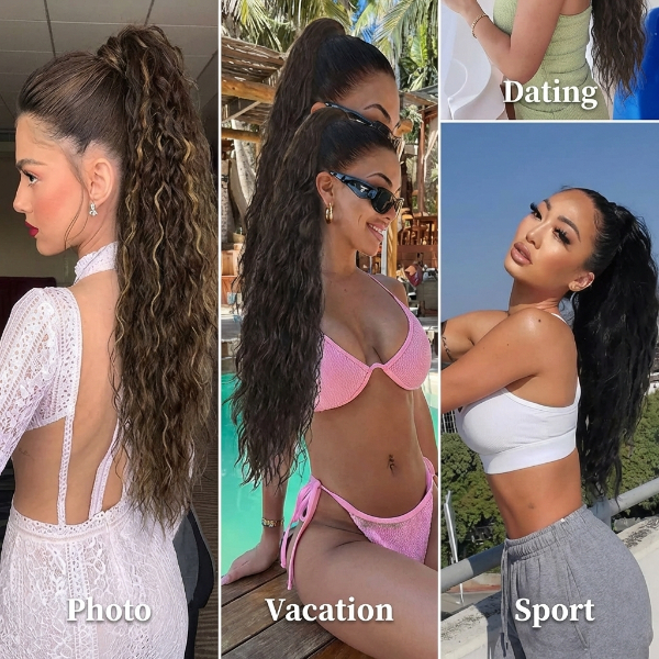 Füge deinem Look 66 cm wellige Eleganz hinzu, ohne auf das Wachstum deines natürlichen Haares warten zu müssen.