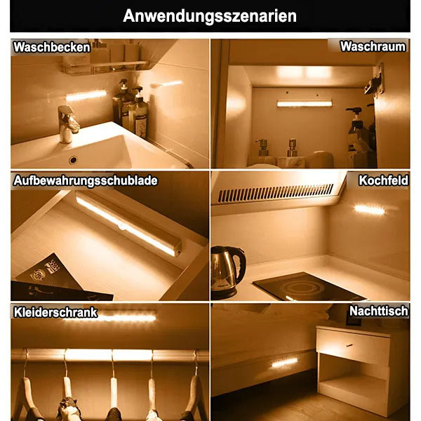 Erleichtern Sie sich das Anziehen, indem Sie diese Leuchte in Ihrem Kleiderschrank anbringen. Sie leuchtet automatisch, wenn Sie die Tür öffnen, und hilft Ihnen, Ihre Kleidung zu finden, ohne im Dunkeln zu tappen.