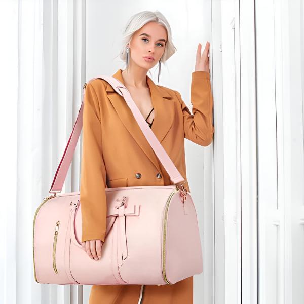 Mit zwei Reißverschlüssen und mehreren Tragemöglichkeiten kombiniert sie Benutzerfreundlichkeit mit modischem Anspruch.