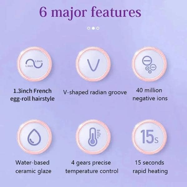 Unser Lockenstab arbeitet mit der Negativ-Ionen-Technologie und verfügt über eine antistatische Keramikbeschichtung, die Haarschäden minimiert und Frizz verhindert.