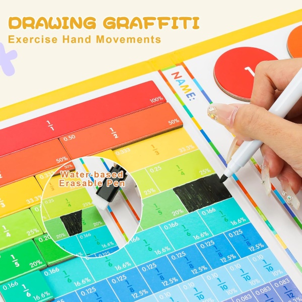 Enthält 9 farbenfrohe magnetische Kreise und Rechtecke, um Brüche leicht zu veranschaulichen und zu verstehen.