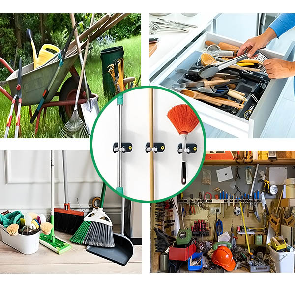 Verwandeln Sie Ihre unordentlichen, überladenen Bereiche in einen sauberen, organisierten Raum. Ganz gleich, ob Besen in der Ecke stehen oder Gartengeräte verstreut sind, diese Halter sorgen für Ordnung und lassen Ihren Raum sauber und aufgeräumt aussehen. Kein Stolpern mehr über Werkzeuge – einfach ein sauberes, organisiertes Zuhause.