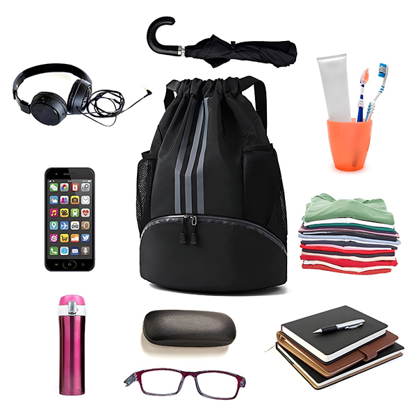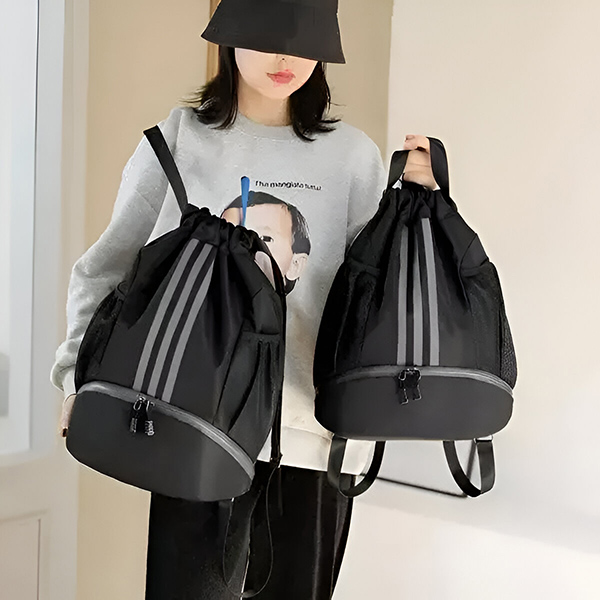 Das große Fach mit Kordelzug eignet sich perfekt zur Aufbewahrung von Sportkleidung, Schuhen, Handtüchern und einer Wasserflasche. Es hat einen speziellen Platz für alles, was Sie für ein effektives Training benötigen. Kein Wühlen mehr im Rucksack – alles hat seinen Platz.