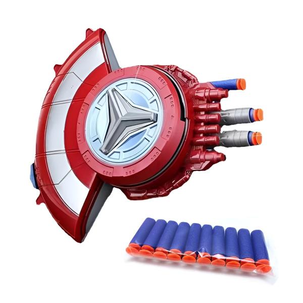 Lass dich inspirieren, ein berühmter Superheld zu werden, mit einem Schild, das nicht nur verteidigt, sondern auch weiche Schaumstoffpfeile für aufregende Action-Spiele abschießt.