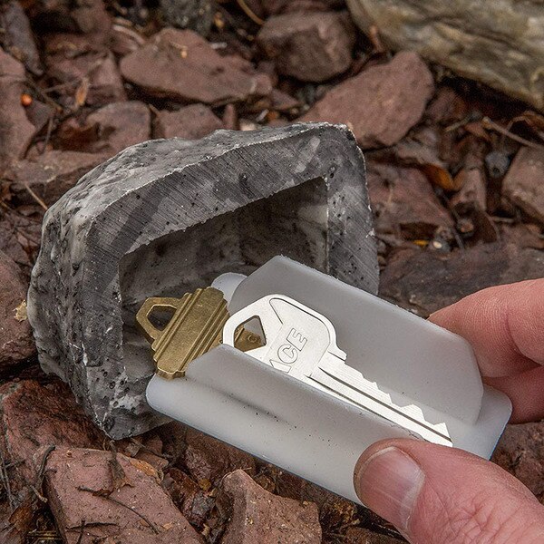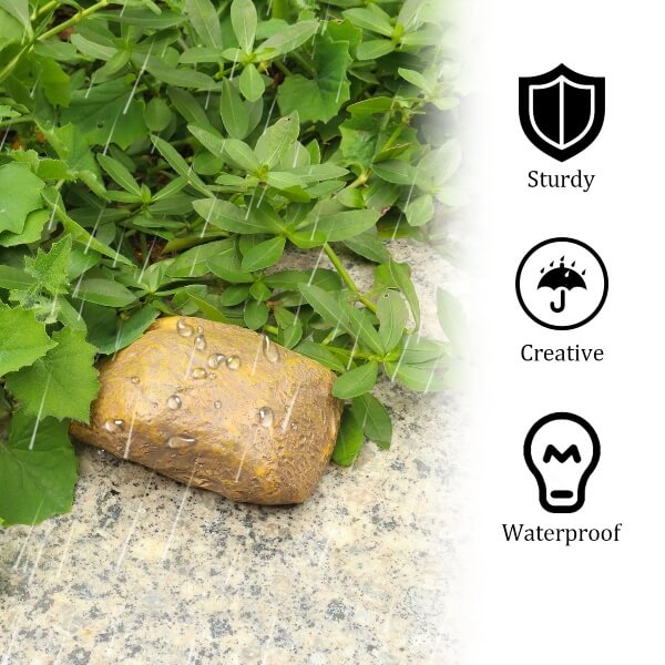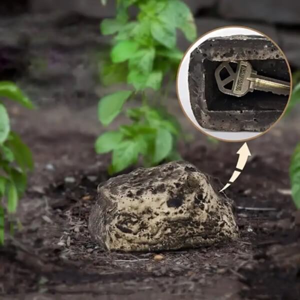 Dieses felsenförmige Schlüsselversteck fügt sich perfekt in die Außenumgebung ein und sorgt dafür, dass dein Schlüssel sicher und versteckt bleibt.