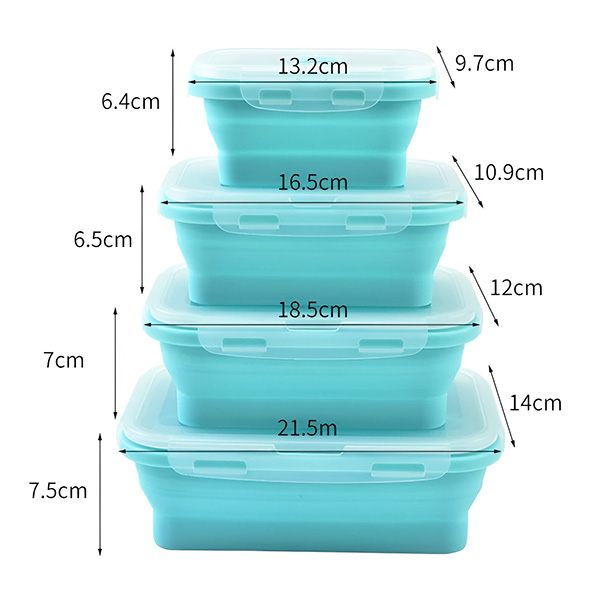 📦 Das Paket enthält: 4x Faltbare Silikonbehälter (350 ml, 500 ml, 800 ml, 1200 ml)