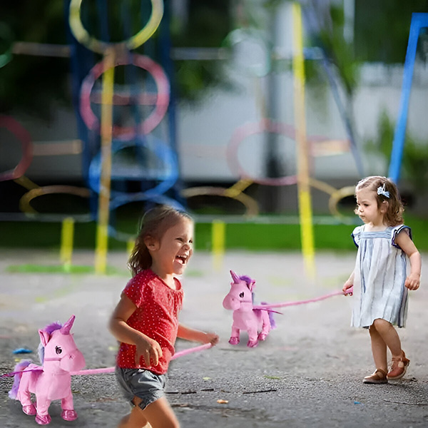 Ersetzen Sie das gewöhnliche Spielzeug Ihrer Kinder durch dieses lustige Einhorn, das mit einer Berührung läuft, singt und ein entzückendes Wiehern von sich gibt! Kinder werden es lieben, zwischen zwei Liedern zu wechseln, an der Leine zu ziehen und mit seinem ultraweichen Baumwollfell zu kuscheln. Genießen Sie die leuchtenden Gesichter Ihrer Kinder, wenn sie mit ihrem neuen besten Freund spielen.