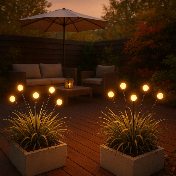 Da sie mit Solarenergie betrieben werden, benötigen Sie keine Kabel, Batterien oder Steckdosen. Platzieren Sie sie einfach, wo Sie möchten, und genieĂen Sie die AtmosphĂ€re.