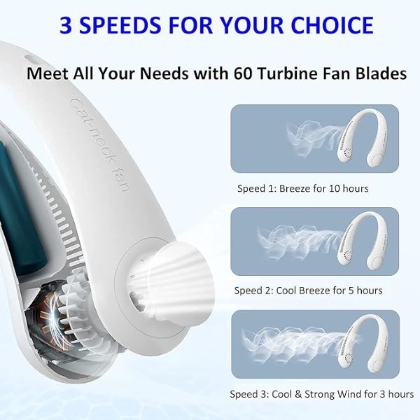 Der Ventilator kann bequem um den Hals gehängt werden und ermöglicht so ein freihändiges Arbeiten. Dieses praktische Gerät hält dich an heißen Tagen und Abenden kühl und erfrischend.