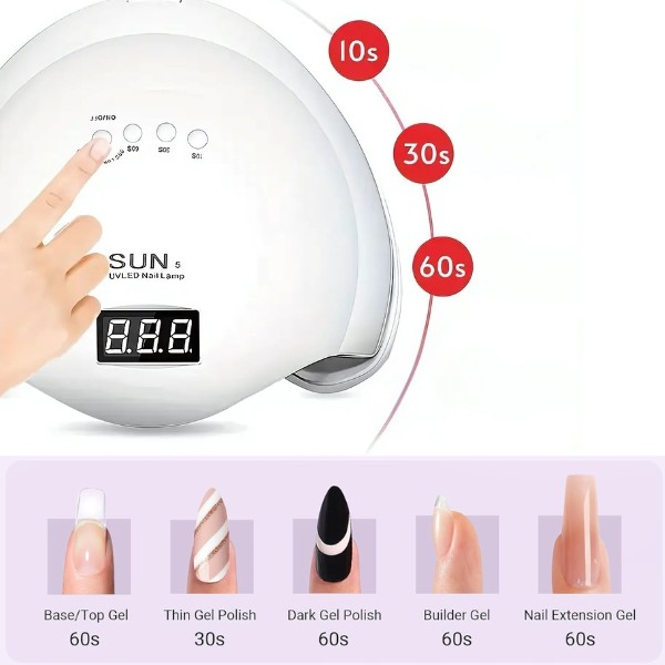 Mit 3 Timer-Einstellungen (10s, 30s, 60s) können Sie den Trocknungsprozess basierend auf Ihrem Geltyp und Ihren persönlichen Bedürfnissen anpassen. Der intelligente Sensor schaltet sich automatisch ein, wenn Ihre Hände oder Füße unter die Lampe gelegt werden, und sorgt jedes Mal für ein müheloses Erlebnis.