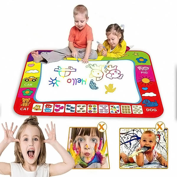 Ermutige deine Kinder, ihre Kreativität zu erforschen, ohne dass sie sich um die Reinigung kümmern müssen. Zum Zeichnen braucht man nur Wasser und die mitgelieferten Filzstifte!
